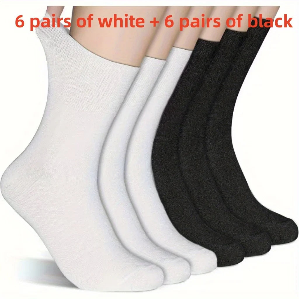 12 pairs of diabetic socks, with elastic cuffs, non-binding tops, extra loose and breathable design for comfortable